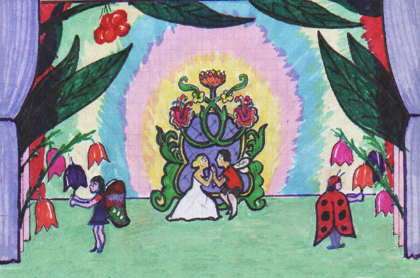 На сцену сбегаются такие же маленькие человечки и их друзья – бабочки, жучки, мотыльки, божьи коровки, пчёлы, осы, шмели и другие красивые насекомые.