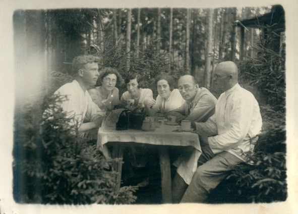 Наум Исидорович с сестрами Софьей Балабан, Адель Герцфельд на даче Евгении Балабан в Ильинском, в Подмосковье в 1934 г.