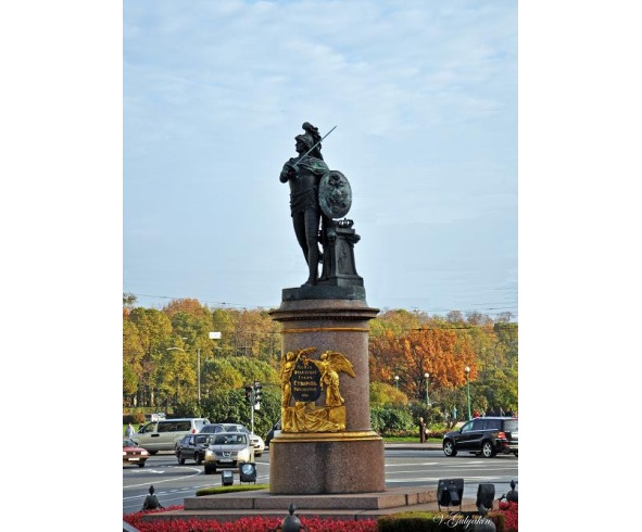Перед нами первый в России монумент, установленный в честь некоронованной особы. Памятник (скульптор М. Козловский, при участии архитекторов К. Росси и А. Воронихина) был сооружён в 1801 году, по высочайшему повелению Императора Павла I, и являет собой бронзовую фигуру Суворова на гранитном пьедестале. Портретного сходства, конечно же, нет, – мы видим аллегорическое изображение древнегреческого воина, – да разве ж в сходстве дело?! Нет, – дело в благодарной памяти!