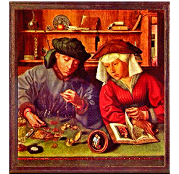 Массейс (Меняла с женой 1520—1515 годы, Масло, дерево, 71х68)