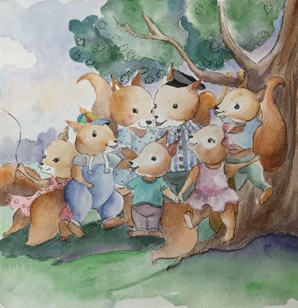 Жил был маленький бельчонок Васька в небольшом городке Бельчанске. Жил он со своей большой семьёй. У него было два брата Петька и Сашка и две сестрёнки Машенька и Дашенька. Васька был самым младшим и ходил в детский сад. Остальные бельчата уже ходили в школу. Мама работала в магазине продавцом. А папа работал полицейским и следил за порядком в городе.