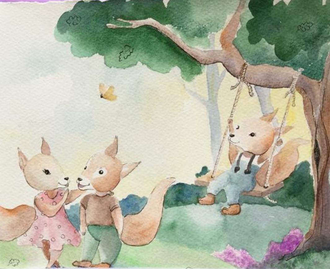 Они пошли на площадку. Там уже гуляло много бельчат. Все веселились, катались с горки и на качелях. Братья и сестры Васьки решили поиграть с ним, и в игре объяснить, что можно делать, а что нет.