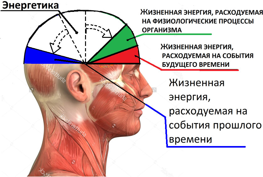 Оставшаяся Жизненная энергия расходуется головным мозгом на организацию мыслительных процессов и двигательных функций в моменте настоящего времени.