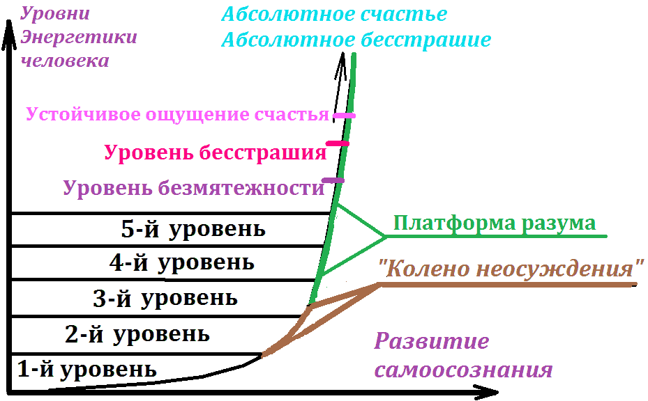 А дальше график поднимается до уровня АБСОЛЮТНОГО БЕССТРАШИЯ и АБСОЛЮТНОГО СЧАСТЬЯ. Об этих высших уровнях поговорим позднее.