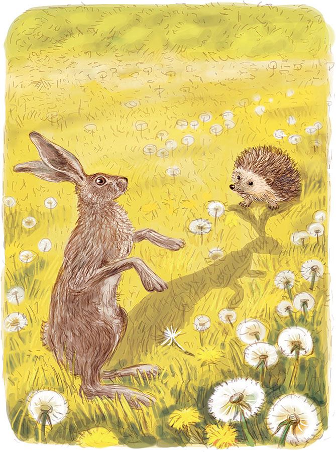 Вместо ответа ёжик свернулся в колючий клубок и стал перекатываться по заячьей тени, потом расправился и спросил: