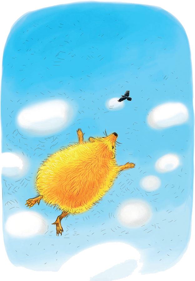 Рюша задышал ровно, тихо… Сквозь него поплыли бледные белые облака. Ёжик вздохнул глубже, и облака полетели быстрее. Он ощутил себя большим солнечным ёжиком, каждая его иголка сверкала, а сам он плыл среди облаков, которые казались ему не больше ромашек на полянке. Что-то промелькнуло над его головой. Он увидел краешком глаза чёрного, блестящего под солнцем воронёнка. Воронёнок был совсем крохотный. Он выделывал в небе поразительные пируэты, а потом резко спикировал прямо к Рюшиному уху. Зашептал горячо, ободряюще: