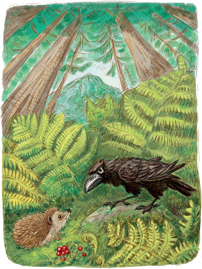 Ворон раскинул крылья, словно хотел обнять ёжика, а заодно и оба мира.