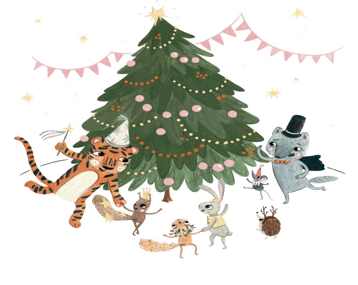 Этот Новый год тигренок встретил в кругу лесных друзей, он не был одинок.