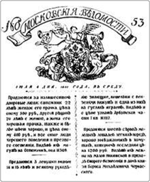 Положение крестьян, особенно с началом царствования Петра I, а затем и в последующее время представляло собой очень печальную картину. Статистические данные свидетельствуют о том, что около половины крестьянских хозяйств в сер. XVIII в. находились на барщине, еще около 20 % – частью на барщине, частью на оброке, остальные – до 36 % – на оброке. Крепостные крестьяне были обычным товаром, об их продаже объявления свободно публиковали газеты. Крепостная душа без земли стоила 10 руб., ребенок – 10 коп., а цена борзого щенка достигала иногда трех тысяч руб. Приведём пример одного из характерных объявлений того времени: