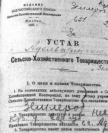 Устав сельскохозяйственного товарищества «Землероб» в с. Адельшино Неверкинской волости, 1921 г.