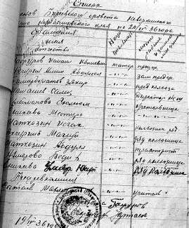 Из документа видно, что из работников сельского совета середняками были Мансуров А. Х. и Еникеев Д. У., а Гафуров И. И. числился бедняком. Все они имели «низшее образование» (ГАПО, Ф-р. 603, оп.1, д. 213)
