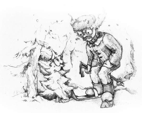 И вот в самый канун Нового года в Ельнике появился Лесник. С топором. На лыжах. Да не один, а в сопровождении какого-то очкастого типа.