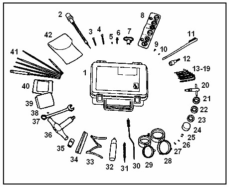 Рис. 2-2. Запасные части, инструмент и принадлежности.