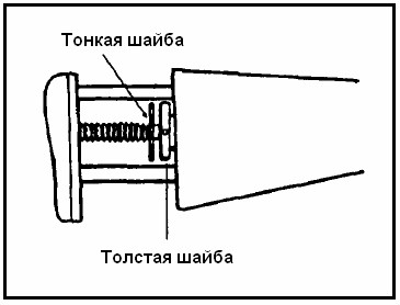 (4) Для освобождения затыльника, поверните тонкую шайбу против часовой стрелки от толстой шайбы.