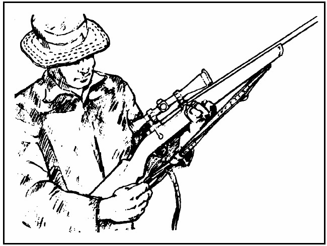 (2) Всегда ставьте винтовку на предохранитель при обслуживании, заряжании и разряжении винтовки.