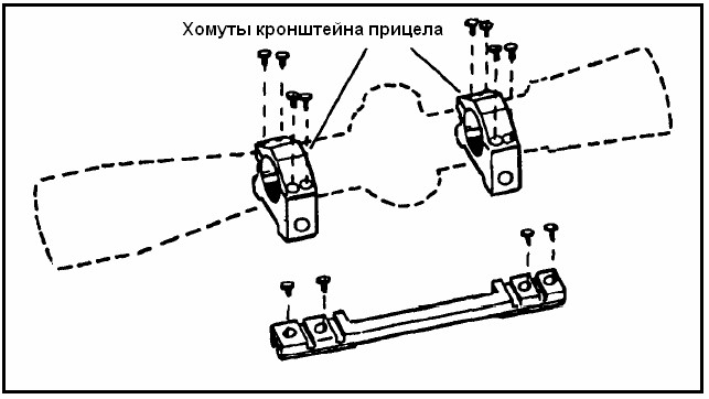 Примечание: После выбора одной пары пазов для установки прицела, она должна использоваться постоянно, чтобы не сбивать пристрелку винтовки.