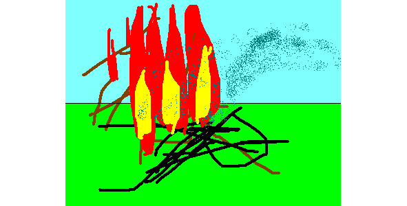 Нашлись и добровольные помощники. Ребята притащили множество старых вещей из дома, выкорчевали несколько деревьев, собрали валежник со всей округи. На костер пошли и колоды с могил и деревянные оградки. Окрестности городка приобрели ухоженный вид, пропали завалы на лесных тропинках, разобрали затор на ручье, который лет десять мешал лодочникам. Взрослые смотрели и радовались тому, что детвора нашла себе полезное занятие, а не путается целый день под ногами. Куча получилась очень большая, и костёр должен был быть огромным. Пришло время зажигать. На это мероприятие собралась вся малышня городка. Крепкий мишка запалил факел и подошёл к куче. Пламя занялось мгновенно. Через десять минут на старых могилах был уже весь город. С громким рёвом неслись пожарные машины, жители бежали с вёдрами и топорами. Крики «Пожар!» тонули в визге малышей.… На беду рядом не оказалось воды.