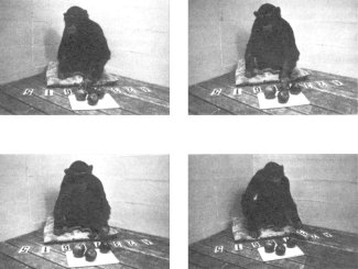 Кроме того, Аи усвоила и принцип ординальности: когда ей предъявляли несколько цифр, разбросанных в случайном порядке по экрану монитора, она прикасалась к ним по очереди в порядке возрастания, т. е. как бы в соответствии с имеющимся у нее мысленным упорядоченным рядом (Tomonaga et al. 1993; Tomonaga, Matsuzawa 2000; Biro, Matsuzawa 2001).