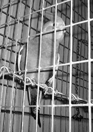 Клетки и вольеры, спаянные оловом или скрепленные с помощью гаек и винтов, не подходят для содержания кореллы. Оставшись один, попугай может полностью разобрать свою клетку и выбраться из нее наружу.