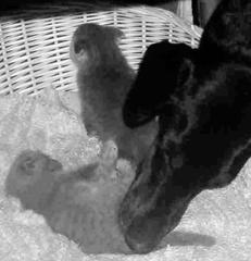Во взаимоотношениях кошек с другими представителями животного мира можно выделить 2 важных аспекта. С одной стороны, кошки проявляют агрессивность по отношению к грызунам, с другой, – неприязнь к собакам. Что касается отношений кошек с грызунами, то тут все понятно – это отношения хищника и дичи. А вот историю взаимной неприязни собак и кошек проследить сложно, можно лишь строить предположения. Среди прочих существует гипотеза известного английского писателя Р. Киплинга о конкуренции домашних животных за место у очага в пещере первобытного человека. Несмотря на это, можно привести примеры довольно частого мирного сосуществования кошек и собак, которые росли и воспитывались в одном доме.