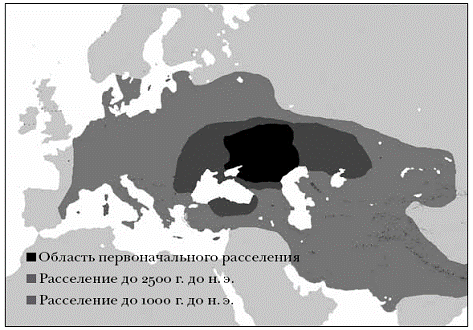 Рис. 1.2. Территориальная экспансия индоевропейских племен.[120]