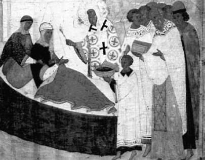 Другой характер болезни зафиксирован так: «…а еже железою боляху, не одинаково: иному убо на шее, иному же на стегне, иному же под пазухою, иному же под скулою, иному же за лопаткою…». Эти признаки указывают на распространение бубонной чумы. Она протекает обычно не так быстро, как ее легочная форма, и у больного при лечении появляется шанс к выздоровлению. Известно, что нередко в одну и ту же эпидемию отмечались сразу два вида чумы. Такие вспышки сопровождались огромной смертностью. Летописец свидетельствует, что «не успевали живые мертвых погребать, уми-раху бо на день по пятидесяти и по ста человек и больше».