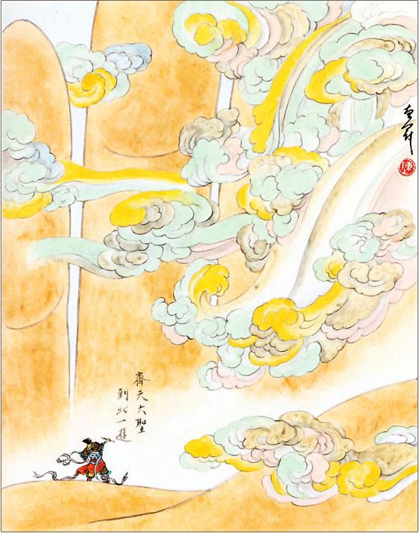 Он принял имя Золотой цикады, –Земного воплощенья божества,И небом удостоен был награды –Услышать Будды мудрые слова.Его душа с рождения казаласьЗапутанной в сетях молвы мирской,У злых людей кипела в сердце зависть,Но не терял он мудрость и покой.На жизненном пути его немалоДолжно случиться было разных бед.В великой императорской столицеПридворным был его известный дед,Отец его – хайчжоуский начальник,Прославленный познаний глубиной, –Но сына ожидал удел печальный –Младенцем он тонул в воде речной.Течение несчастного помчалоВниз по реке с огромной быстротойИ выбросило на берег песчаныйНа остров пред Горою Золотой.И местный настоятель монастырскийРешил его вскормить и воспитать,Но юноша с монахом распростился,Чтоб отыскать свою родную мать.Потом в столицу он стопы направит,Почтить визитом деда-старика,Но полководец-дед тогда возглавилГромившие разбойников войска.С отцом он снова очутится вместе,Когда покинул тот загробный мир,Он удостоен был великой честиИ всех в стране заслугами затмил.Но гордо он отверг мирскую почестьИ вновь монахом сделался простым,Чтоб знания расширить и упрочить,Пошел в Хунфу, – известный монастырь.И вот – с буддийским, истинным ученьемВсе мысли навсегда свои связал,Был в мире прозван «Быстрое теченье»,Монашеское имя – Сюань-цзан.В тот же день весь народ оповестили об избрании Сюань-цзана распорядителем церемоний. Этот человек с детства был посвящен в монахи и еще в раннем возрасте принял обет воздержания и поста. Его дед, Инь Кай-шань, был главнокомандую – щим при царствовавшей в то время династии. Отец – Чэнь Гуанжуй, получил первую ученую степень на экзаменах и был назначен академиком императора. Все стремления Сюань-цзана были направлены на то, чтобы постичь великое учение Будды. Его не интересовали ни почести, ни слава. Он всем сердцем стремился к тишине и покою. Это был человек добродетельный, благородного происхождения. Не было такой книги из священного писания, которую бы он не знал. Каждое божественное слово Будды находило понимание в его сердце.