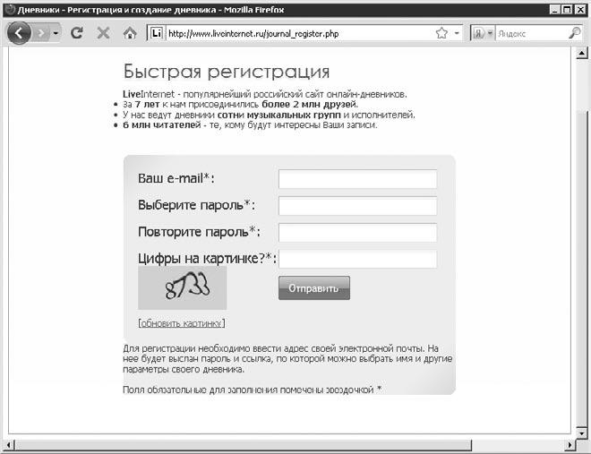 Главное преимущество блогохостингов – простота и доступность. Сделать блог на блогохостинге может даже ребенок, достаточно зарегистрироваться и выбрать название для блога (рис. 1.2), а ведение блога не требует никаких денежных затрат.