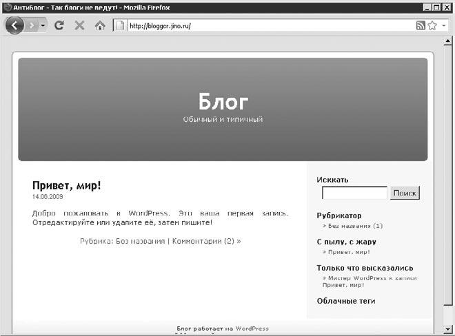 Автономный блог – это блог, который размещается на своем хостинге и домене и находится под полным контролем и управлением владельца. Обычно для автономных блогов используется CMS WordPress – самая лучшая и популярная система управления автономным блогом (рис. 1.4).