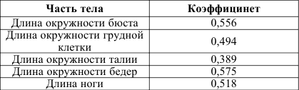 Коэффициенты для вычисления идеальных пропорций тела при росте до 164 см