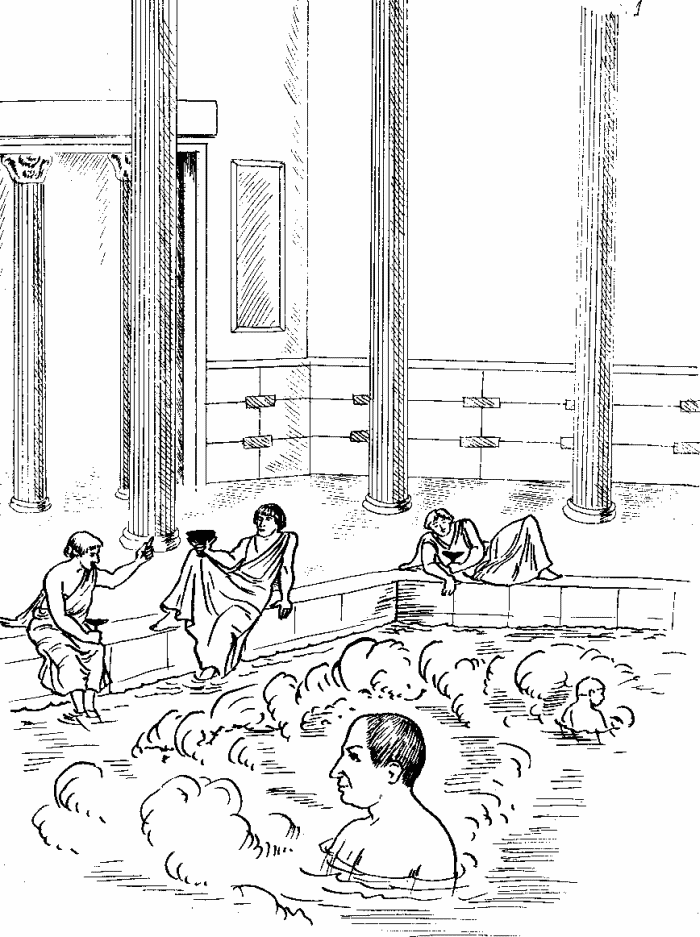 Вообще, в Древнем Риме, как и в Древней Греции, большинство оздоровительных процедур проводилось в термах. Римские медики справедливо полагали, что вода и пар способны поистине творить чудеса, а знаменитый врач Асклепиад даже выработал медицинскую доктрину, согласно которой лечить больных следует «правильно, скоро и приятно». Именно такое лечение и возможно в бане! Сочетание горячего пара, массажа и холодных обливаний закаливало и укрепляло организм, мобилизуя его защитные силы для борьбы с болезнью. Лечебный эффект от банных процедур усиливался еще и тем, что в бани поставлялась вода из термальных (то есть подземных) источников, а эта вода, как известно, содержит огромное количество полезных минералов и солей. Особые свойства термальной воды значительно повышали целебную и оздоровительную силу банных процедур.
