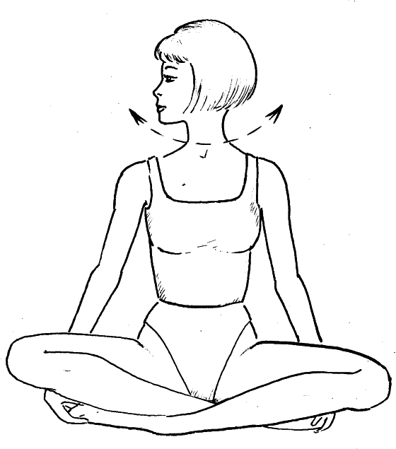 2. Сядьте, сложив ноги «по-турецки», обхватив руками носки ног, выпрямите спину. На счет «раз» энергично поверните голову влево, на счет «два», «три» постарайтесь повернуть голову еще дальше, на счет «четыре» вернитесь в исходное положение. Выполняйте 4–6 раз в каждую сторону.