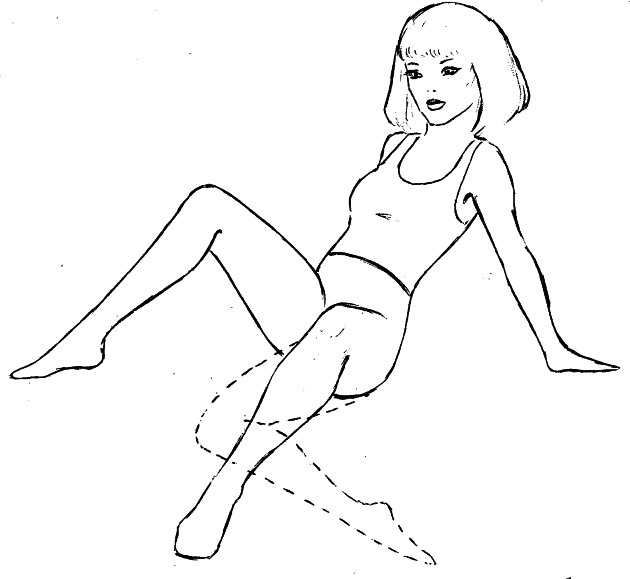 5. В положении сидя выполняйте скрестные махи ногами. Эти движения весьма действенно укрепляют мышцы живота и наружной стороны бедра.