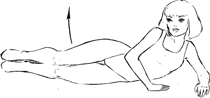 3. Пора на боковую. Лягте на правый бочок, положив руку под голову. Одну ногу, ту, что касается пола, согните в колене, другую поднимайте и опускайте – невысоко и равномерно.