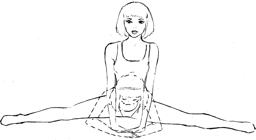 6. Исходное положение – сидя, ноги врозь, ладони перед собой на полу пальцами друг к другу. Наклоняйтесь вперед и старайтесь при этом положить локти на пол. Вернитесь в исходное положение и повторите 16 раз.