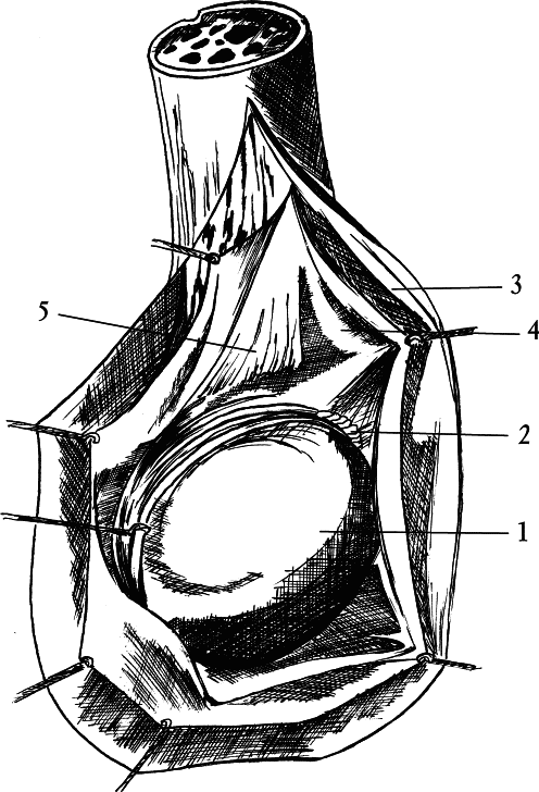 Рис. 6. Семенной канатик. 1 – отверстие мочеиспускательного канала; 2 – головка полового члена; 3 – крайняя плоть; 4 – половой член; 5 – пещеристое тело