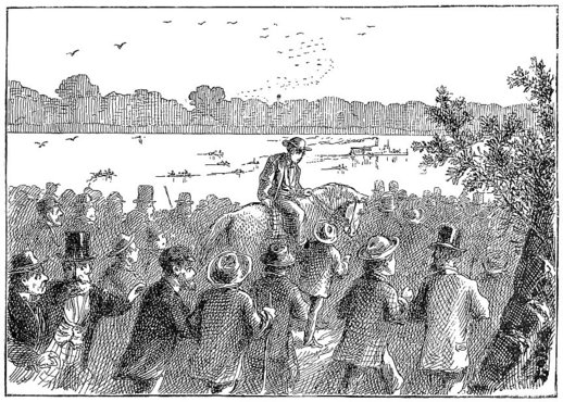 Away in the middle of the night a wild peal burst from the village bells, and in a moment the streets were swarming with frantic half-clad people, who shouted, “Turn out! turn out! they’re found! they’re found!” Tin pans and horns were added to the din, the population massed itself and moved toward the river, met the children coming in an open carriage drawn by shouting citizens, thronged around it, joined its homeward march, and swept magnificently up the main street roaring huzzah after huzzah!