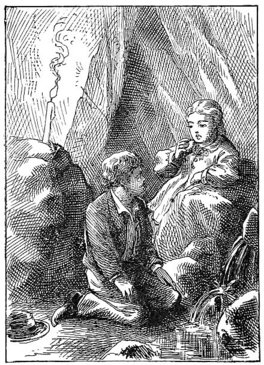 They rose up and wandered along, hand in hand and hopeless. They tried to estimate how long they had been in the cave, but all they knew was that it seemed days and weeks, and yet it was plain that this could not be, for their candles were not gone yet. A long time after this – they could not tell how long – Tom said they must go softly and listen for dripping water – they must find a spring. They found one presently, and Tom said it was time to rest again. Both were cruelly tired, yet Becky said she thought she could go a little farther. She was surprised to hear Tom dissent. She could not understand it. They sat down, and Tom fastened his candle to the wall in front of them with some clay. Thought was soon busy; nothing was said for some time. Then Becky broke the silence: