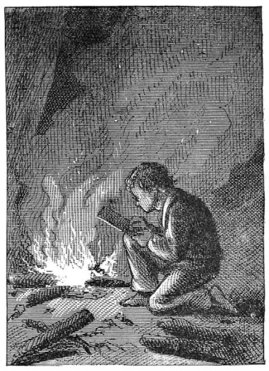 As the night deepened, Huck began to nod, and presently to snore. Joe followed next. Tom lay upon his elbow motionless, for some time, watching the two intently. At last he got up cautiously, on his knees, and went searching among the grass and the flickering reflections flung by the campfire. He picked up and inspected several large semi-cylinders of the thin white bark of a sycamore, and finally chose two which seemed to suit him. Then he knelt by the fire and painfully wrote something upon each of these with his “red keel”; one he rolled up and put in his jacket pocket, and the other he put in Joe’s hat and removed it to a little distance from the owner. And he also put into the hat certain school-boy treasures of almost inestimable value – among them a lump of chalk, an India-rubber ball, three fishhooks, and one of that kind of marbles known as a “sure ’nough crystal.” Then he tip-toed his way cautiously among the trees till he felt that he was out of hearing, and straightway broke into a keen run in the direction of the sand-bar.