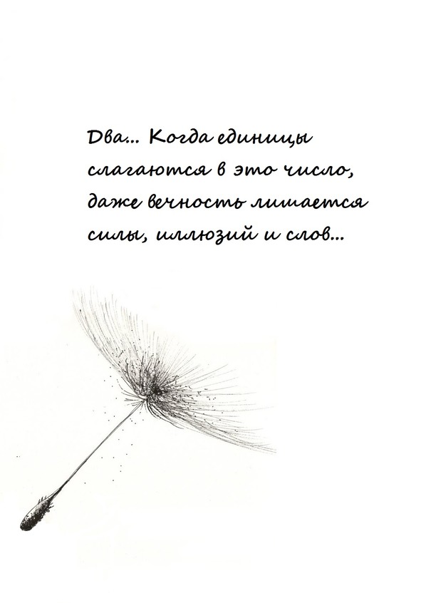 Два окна. Одно на север, другое напротив.И дверь на запад,чтобы солнце входило без стука.А главное – крыша. Точнее чердак, где заводятУкромное место, чтоб слиться с дождя перестуком.Две руки, что тебя обнимают настолько надежно,Что наличие стен за пределами —только формальность.Страсть и нежность в сплетении тел,и слов невозможность.И иная, ни с чем не сравнимая, жизни реальность.Два удара. И вечность меж ними.В которой сердцеЗабывает биться. И запах родной до дрожиОт твоих волос цвета соли, смешаной с перцем,И твоей распаленной в едином слиянии кожи.Два. Когда единицы слагаются в это число,Даже вечность лишается силы, иллюзий и слов.Как хорошо!