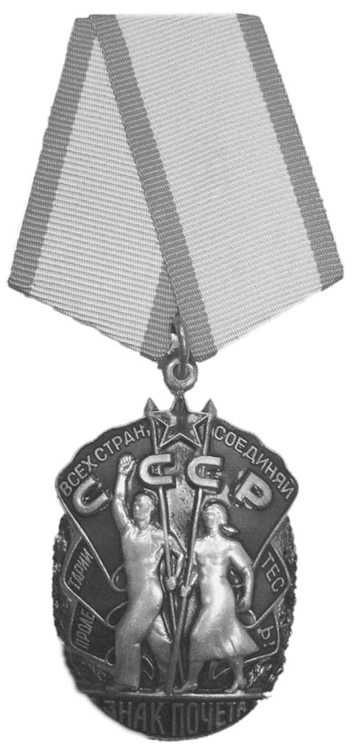 Итак, в центре орденского знака были изображены мужчина и женщина, несущие знамёна, которые, расположенные симметрично, были покрыты красной эмалью с надписью: «Пролетарии всех стран, соединяйтесь!» Между вершинами древка знамён была помещена красная эмалевая звезда, а ниже – золотистыми буквами – «СССР». Боковые края знака были изображены в виде дубовых венков, а в нижней части лицевой стороны имелась надпись «Знак Почёта».
