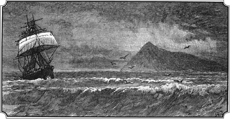 Огибая мыс последней земли, недолго моряки наслаждались прекрасным видом окрестных островов. Жестокий Каап Хоорн требовал своей дани. Перед наступлением ночи неистовый Борей послал с запада самую злобную стаю псов навстречу путешественникам. Среди свиста и рева налетающих порывов ветра путешественники увидели этот мыс в его настоящем виде: Каап Хоорн был окутан дымкой и рваными облаками, а вокруг его смутных очертаний бушевала буря и кипела вода.
