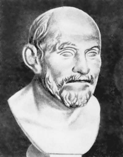 ДемокритДемокрит (ок. 460–370 г. до н. э.) – греческий философ, уроженец приморского г. Абдеры (Фракия, Восточная Греция). Происходил из богатой семьи, получил хорошее образование и богатое наследство. Использовал материальные богатства для приобретения духовных ценностей. Совершил путешествие в Вавилон, Египет, Индию; воспринимал идеи разных стран и народов, общаясь с мудрыми и знающими людьми. По-видимому, в Афинах он встречался с Анаксагором и Сократом. Пользовался большим уважением и почетом на родине.