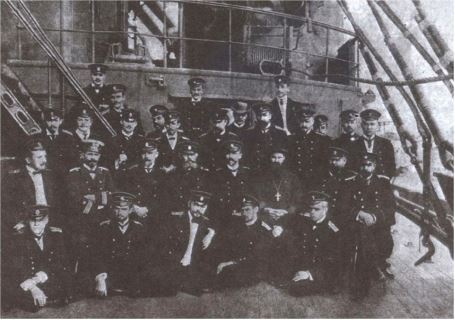 Офицеры «Цесаревича» и штаба эскадры в Циндао. Аейтенант К. Кетлинский – второй слева в третьем ряд