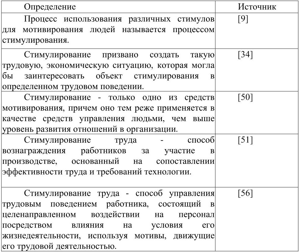 Анализ основных подходов к определению термина «стимулирование» представлен в таблице 4.