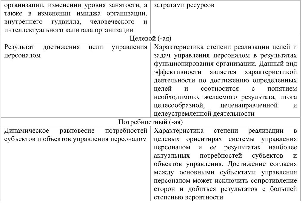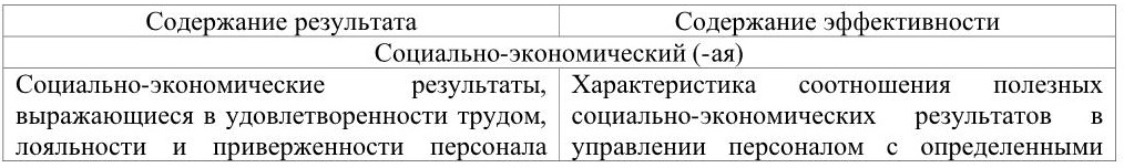 Таблица 2. Содержание видов результатов и эффективности в системе управления персоналом
