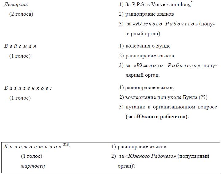 215 Здесь отмечены четыре голосования по вопросам о кооптации в центры, когда в голосовании участвовали бундовцы, которые каждый раз поддерживали Мартова. Эти голосования В. И. Ленин разбирает в книге «Шаг вперед, два шага назад» (см. настоящий том, стр. 287–288).