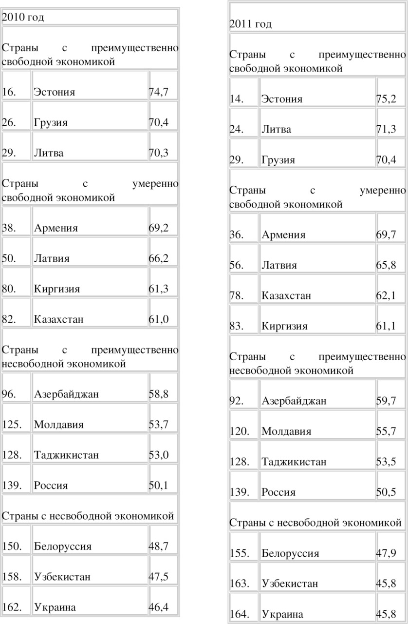Примерно такое соотношение мы видим при сравнении индексов экономической свободы некоторых стран мира, в том числе и развитых в экономическом отношении.