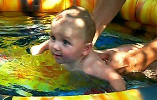 Полугодовалый ребёнок, попеременно поддерживаемый сильными мужскими руками отца и деда, долго и с видимым удовольствием поплескался в нём.