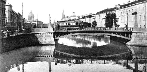 Новый мост состоял из нескольких секций и был украшен гранитными обелисками с фонарями. Его узорчатая ограда в точности повторяла ограду на набережных Мойки в этом месте.
